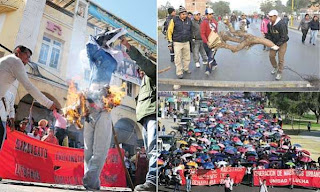 Las casetas del populoso mercado Mutualista en Santa Cruz comenzaron a quemarse la noche de ayer domingo, justamente al día siguiente de que los gremialistas anunciaron que no acatarán el anunciado paro de 48 horas decidido por la Gobernación y el Comité Cívico cruceños, a la cabeza de otras instituciones totalmente controladas por la derecha, como la Universidad Gabriel René Moreno. Aunque se desconocen las causas que originaron este desastre, llamó enormemente la atención que los pocos hidrantes de la zona no tenían agua, por lo que el fuego que inició en algunos puestos pudo extenderse rápidamente. Vanos fueron los esfuerzos de los comerciantes, que trataron de recuperar la mercadería que tenían en sus kioscos, arriesgando sus vidas. Con la llegada de los bomberos y colaboración de los mismos comerciantes se combatió el siniestro; luego, cuando arribó al lugar Luis Fernando Camacho, fue recibido con mucha hostilidad porque varios comerciantes abiertamente lo acusaron de estar detrás...